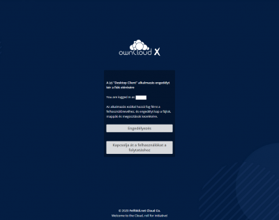 Felhasználónév és jelszó megadása a böngészőben, majd Engedélyezés gombra kattintás